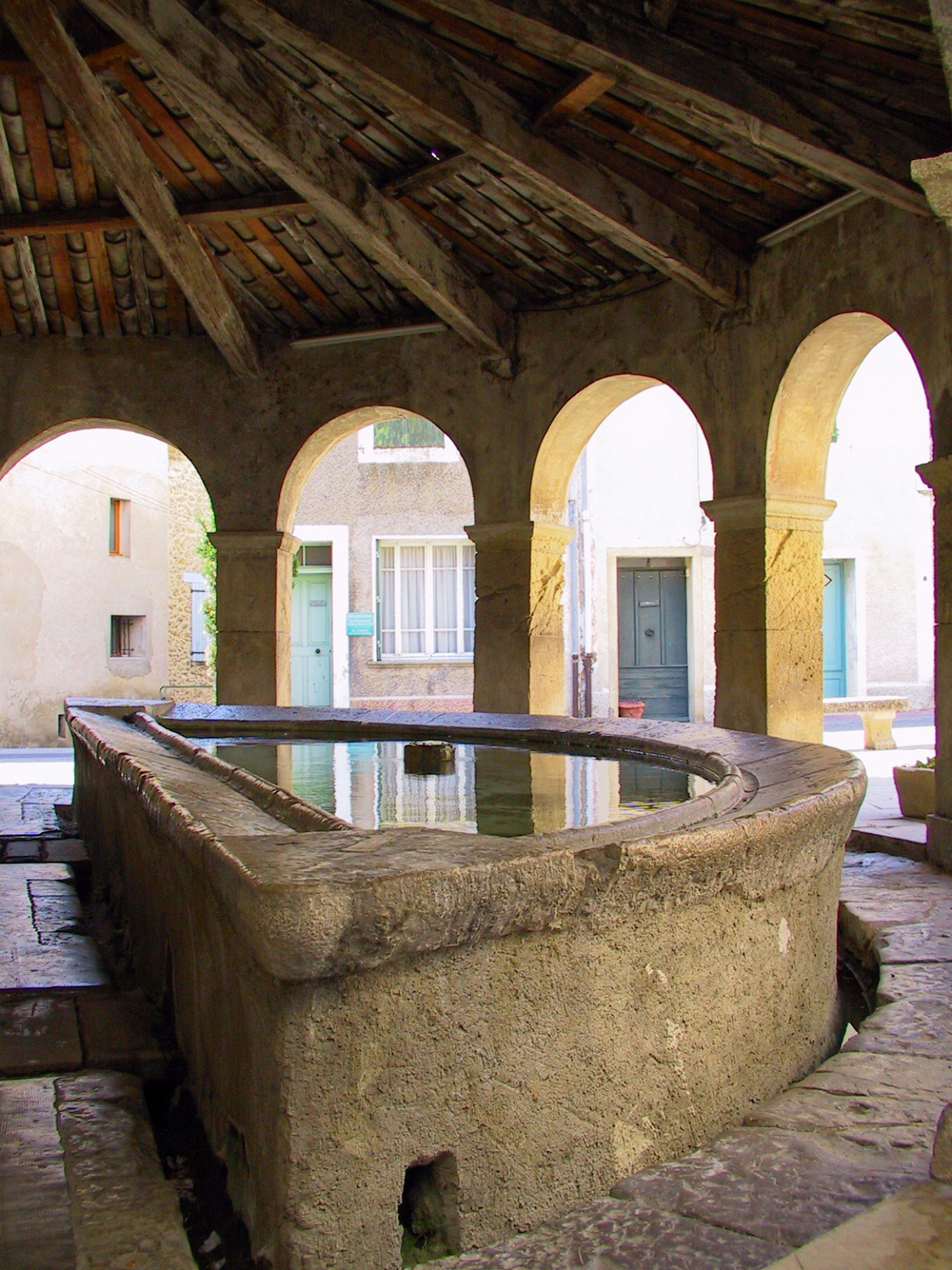 À ses côtés, le lavoir complète harmonieusement le site. Reconstruit en 1863 en forme semi-circulaire avec ses élégantes arcades, il offre aujourd’hui un lieu plein de charme, témoin de la vie quotidienne d’autrefois.